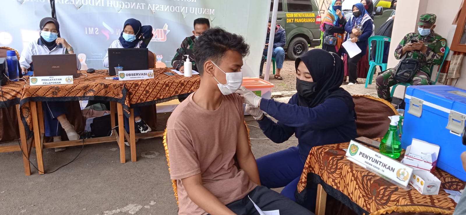 Sukabumi 24/8, DPD LDII Kota Sukabumi bekerjasama dengan Kodim 0607/Sukabumi menyelenggarakan vaksinasi Covid-19 secara masal pada hari Selasa, 24 Agustus 2021 yang bertempat di Halaman Masjid At-Tarfi di Gg. H.Tarpi, Nanggeleng, Kec. Citamiang, Kota Sukabumi. Kegiatan ini diikuti oleh warga LDII yang berdomisil di Sukabumi dan warga umum di sekitar lokasi pelaksanaan vaksinasi.