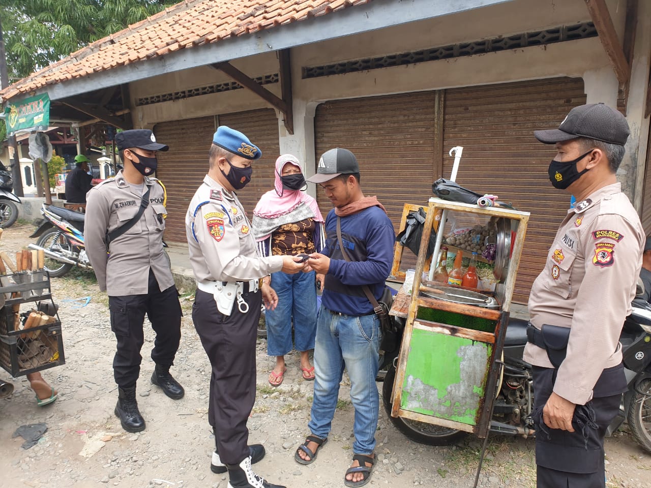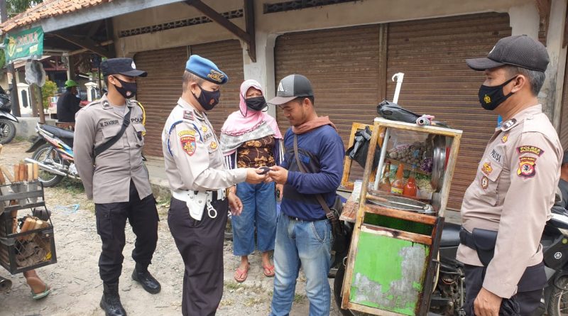 Sebanyak 10 personel gabungan baik dari Polsek, Koramil, Satpol PP maupun Perangkat Desa diterjunkan untuk memberikan masker gratis kepada warga. Pemberian masker ini dilaksanakan dalam kegiatan operasi yustisi penegakan disiplin protokol kesehatan yang dipimpin langsung oleh Kapolsek Rajagaluh Polres Majalengka Polda Jabar AKP Sarjiyo.