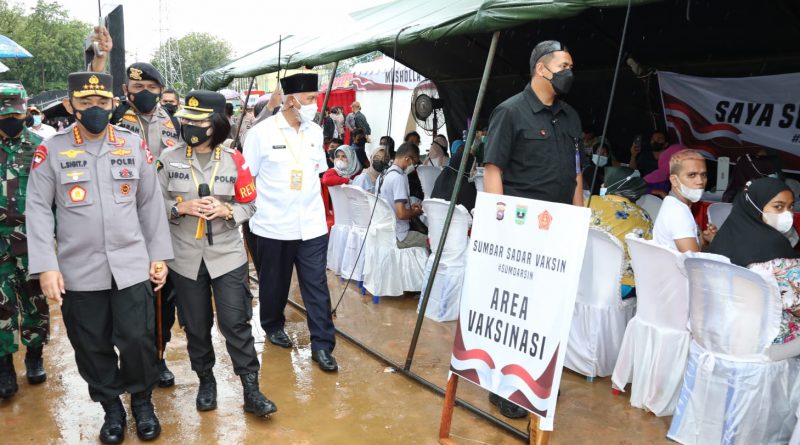Tak hanya memimpin rapat Forkopimda, Panglima dan Kapolri meninjau langsung kegiatan vaksinasi serentak Sumbar Sadar Vaksin (Sumdarsin) di GOR H. Agus Salim, Padang, Sumbar. Acara itu dilakukan bersamaan di 221 titik