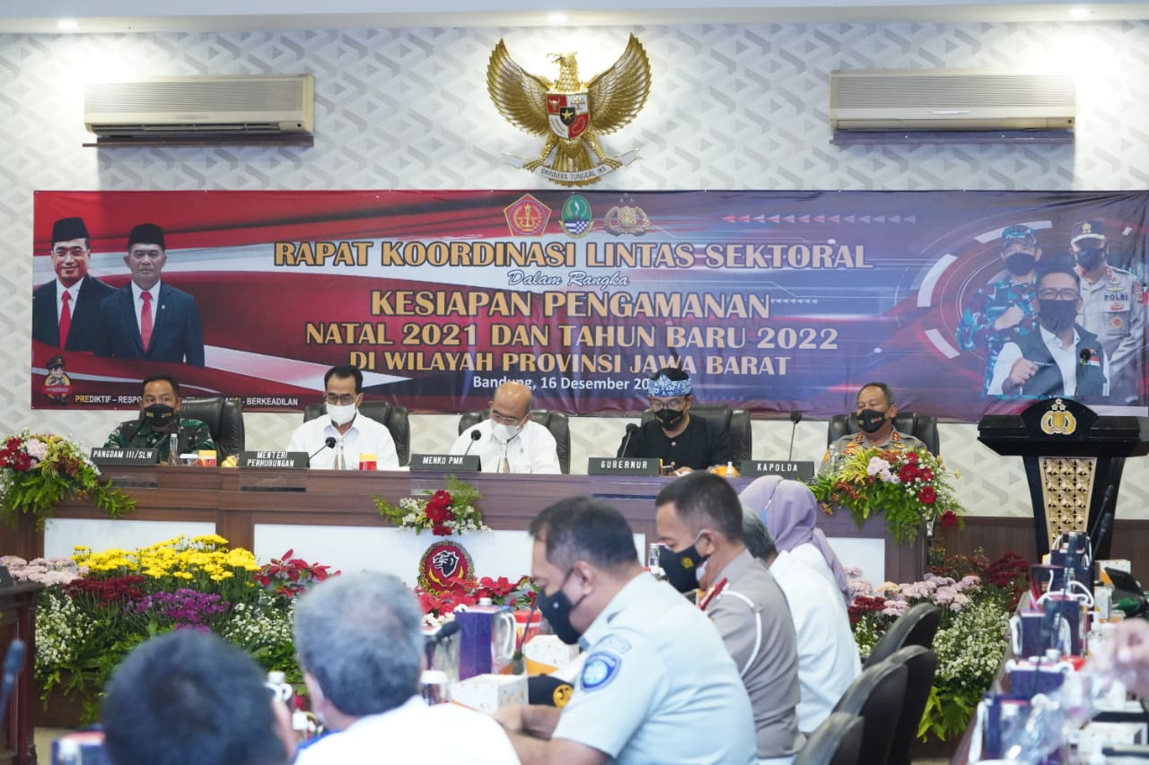 Kapolda Jabar Irjen Pol. Drs. Suntana M.Si melaksanakan kegiatan Rakor Lintas Sektoral Operasi Lilin Lodaya 2021 bersama Menko PMK, Menhub RI dan FKPD Prov Jabar, Gubernur Jabar, Pangdam III/Siliwangi dan sejumlah pejabat lainnya, Kamis (16/12/2021).
