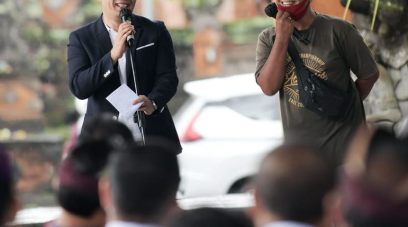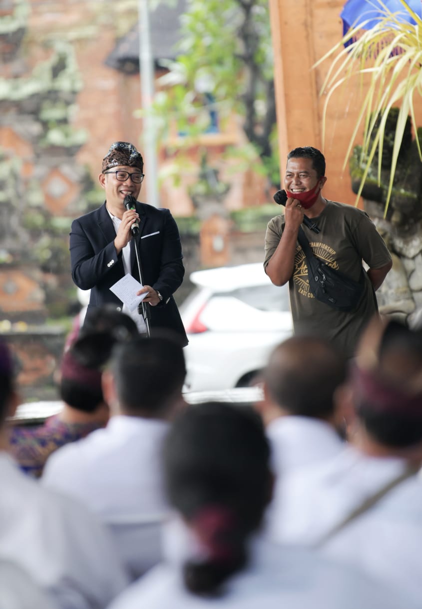 Gubernur Jawa Barat Ridwan Kamil beserta Wakil Gubernur Provinsi Bali Tjokorda Oka Artha Ardhana Sukawati menghadiri langsung peluncuran program ini di samping Pura Melanting, Pasar Badung Dangin Puri Kangin, Kota Denpasar, Bali, Selasa (18/1/2022).