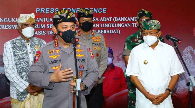 Bali – Kapolri Jenderal Listyo Sigit Prabowo mengukuhkan Bantuan Keamanan Desa Adat (Bankamda) dan forum Sistem Pengamanan Lingkungan Terpadu Berbasis Desa Adat (Sipandu Beradat), di Bali, Jumat (28/1/2022).
