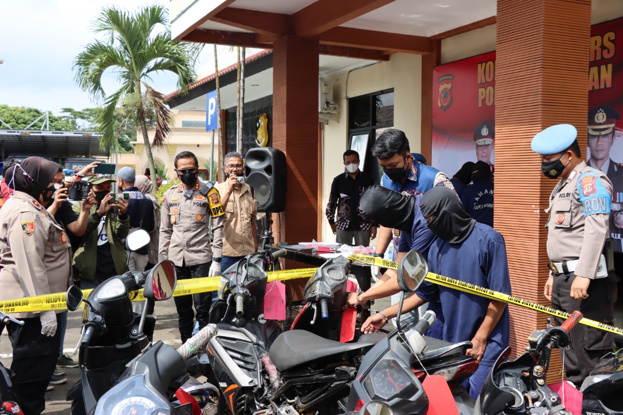 “Modus operandi yang dilakukan para pelaku ini yaitu menyasar motor yang berada di dalam rumah dengan cara mencongkel jendela dan motor yang sedang diparkir di halaman rumah. Barang bukti yang berhasil diamankan adalah 13 unit sepeda motor, 3 buah kunci leter T, 2 kaca spion, obeng plus, kunci inggris, plat nomor dan pisau,” jelas Kapolres.