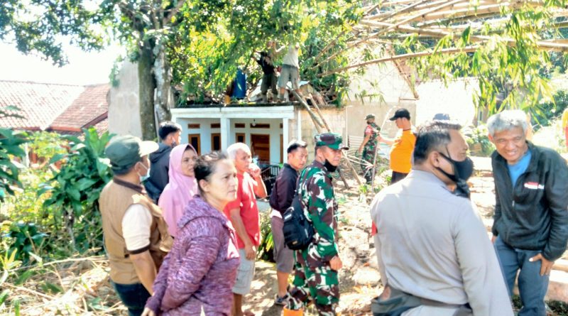 linestv.id, Bandung – Jajaran Personel TNI-POLRI Polsek Cikancung Polresta Bandung Polda Jabar bersama masyarakat melaksanakan gotong royong membenahi rumah warga masyarakat Desa Cikancung yang diterjang bencana puting beliung di Wilayah Desa Cikancung dan Desa Mandalasari Kecamatan Cikancung Kabupaten Bandung, Minggu (13/3/2022).