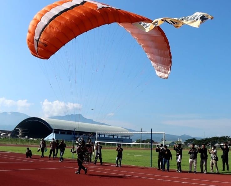 Para penerjun Paramotor ini dikerahkan untuk memberi imbauan Kamtibmas kepada Pemudik yang akan kembali menuju Kota besar setelah mudik dari Kampung Halaman.