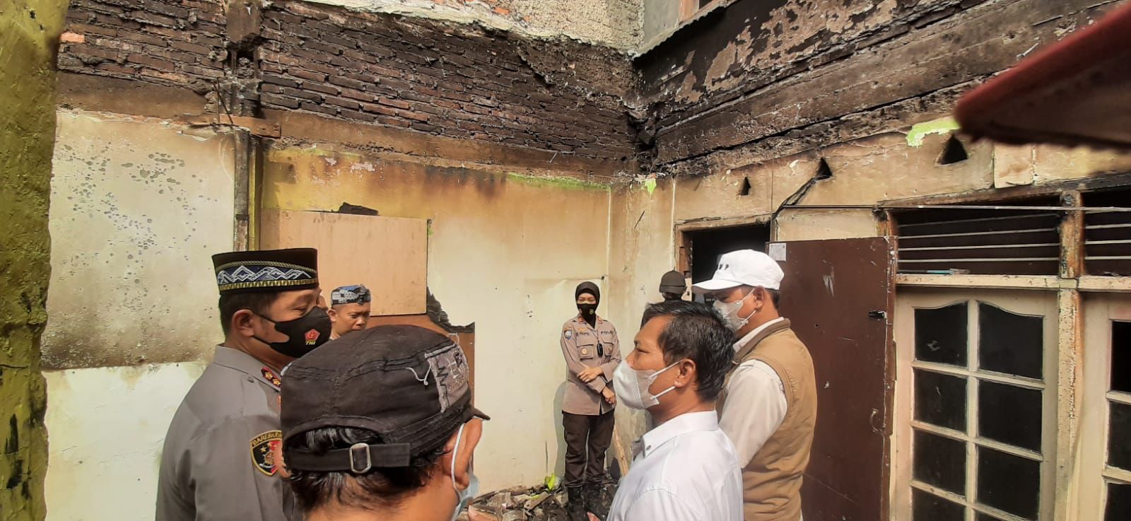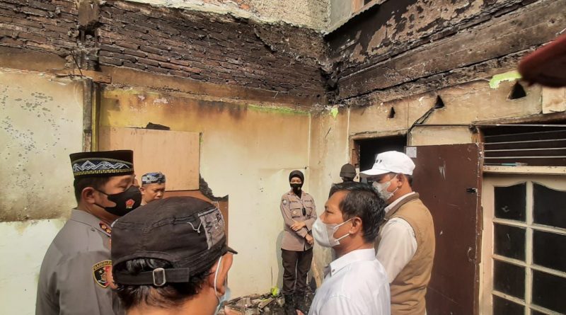 Kapolres Karawang Polda Jabar melakukan pengecekan lokasi yang terbakar dengan melihat langsung puing puing bangunan yang dilalap s jago merah, dalam kesempatan tersebut Kapolres menyapa santri yatim serta warga sekitar.