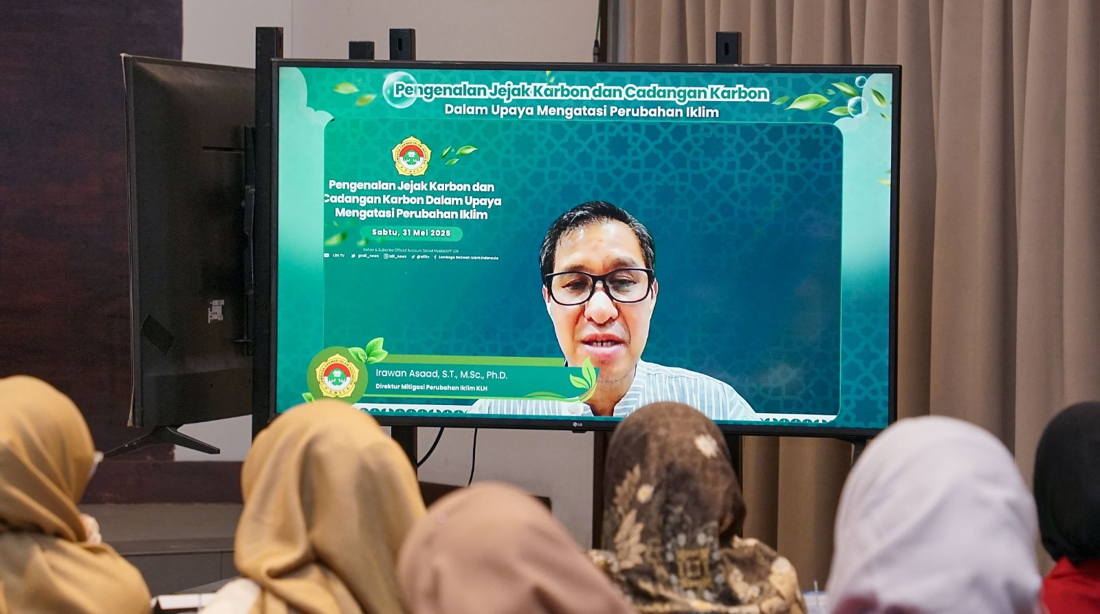 Jakarta (1/6). Memperingati Hari Bumi ke-55, Departemen Litbang, Iptek, Sumberdaya Alam, dan Lingkungan Hidup (LISDAL) DPP LDII bersama Kementerian Lingkungan Hidup dan Kehutanan (KLHK) menggelar webinar bertema “Pengenalan Jejak Karbon dan Cadangan Karbon dalam Upaya Mengatasi Perubahan Iklim”. Kegiatan ini digelar secara hybrid di Kantor DPP LDII, Senayan, Jakarta, pada Sabtu (31/5).