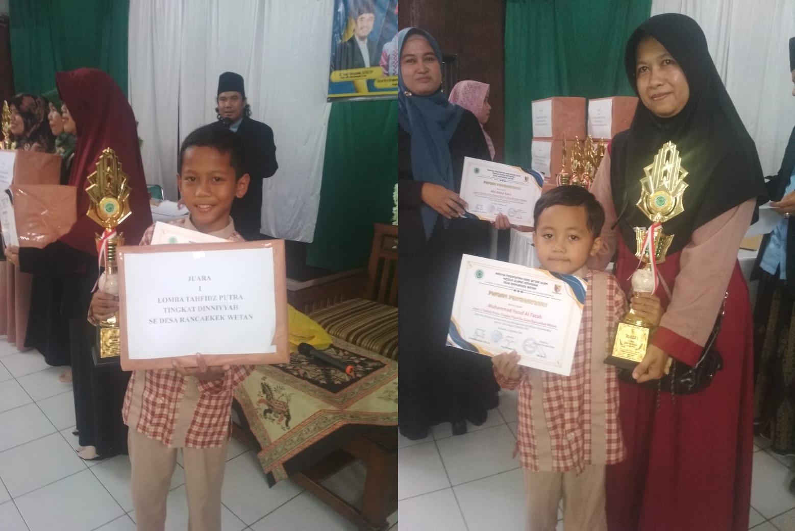 - Muhammad Yusuf Al Fath bin Tri Haryanto – Juara 1 Tahfidz Kategori PAUD Putra.
